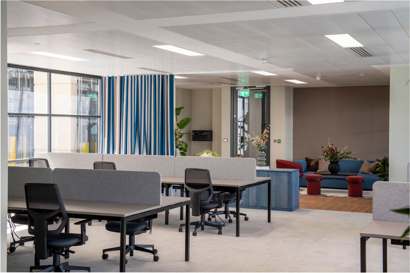17 York Street provides the businesses of Manchester with high-quality, plug & play office space designed for ease and flexibility – ready to be used as soon as the tenant moves in. The fitted and furnished suites span across three floors, offering over 60 workstations, multiple ‘Zoom rooms‘, coworking spaces and breakout areas, two large boardrooms, and seven bookable meeting rooms of varying sizes.