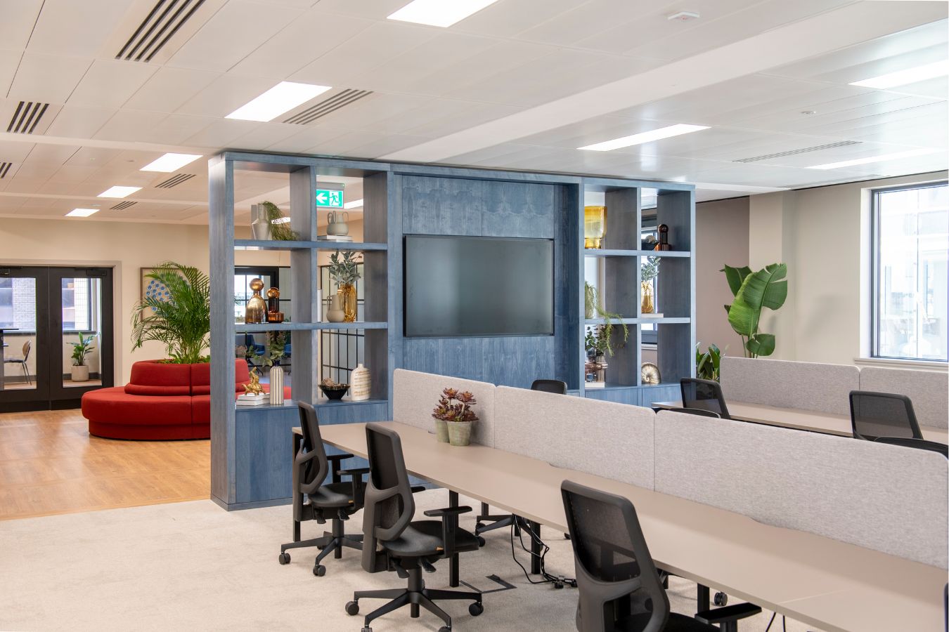 “This £400,000 project brings together thoughtful materials and purposeful design to support the way people actually work. Glass partitions offer clarity without cutting connection. Bespoke birch ply joinery in cool sky blue brings warmth and calm. Ruby red kitchens and inviting breakout spaces encourage moments of pause, collaboration, and creativity” – BLOK Projects