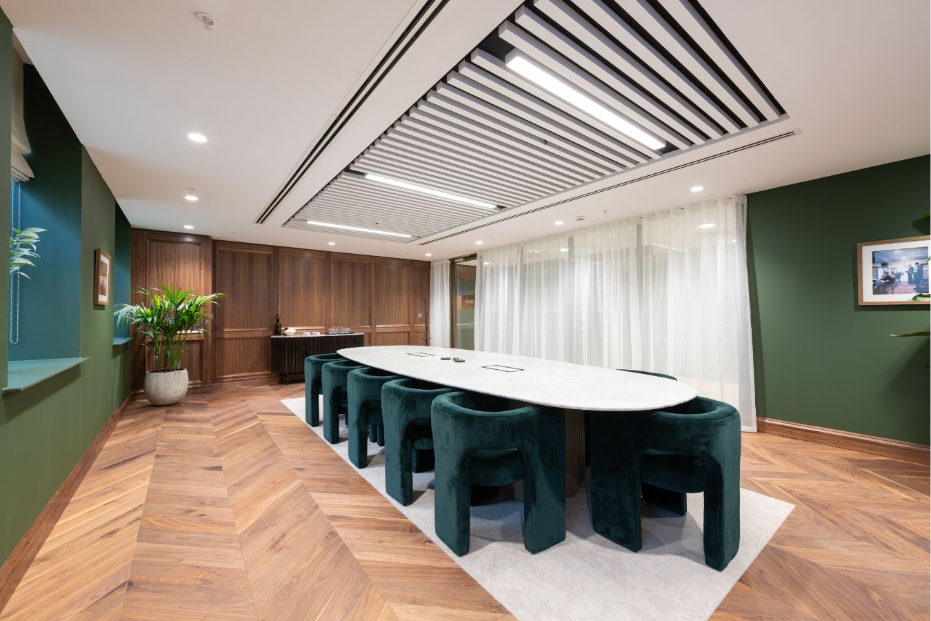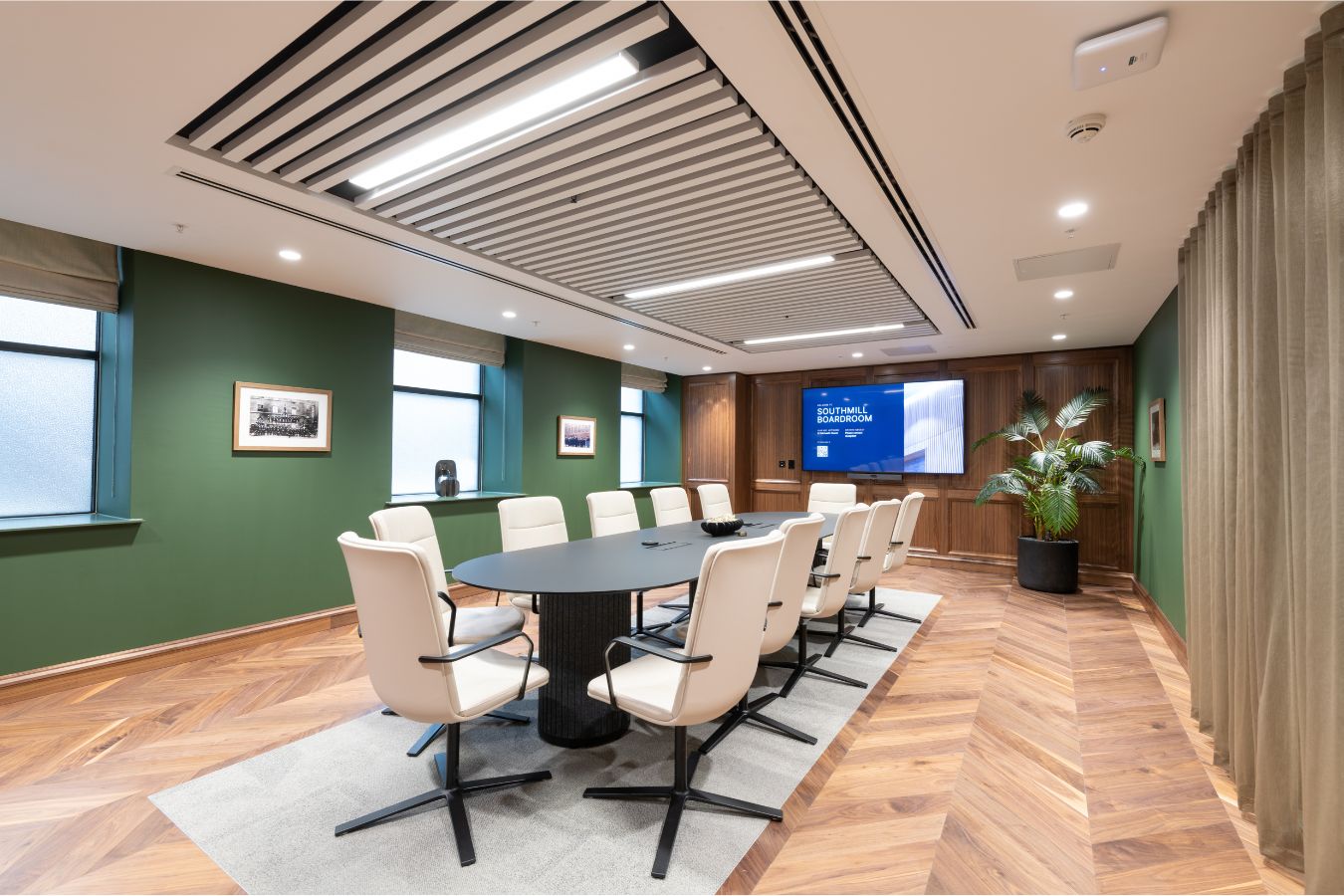 The brief for the Penketh Interiors team was to curate and deliver a furniture portfolio that supported the architect’s vision for the building. While the overall aesthetic is cohesive, each space has its own subtle design language. One of the large ground-floor meeting rooms, for example, has a luxurious, boutique feel, while another adopts more masculine tones for a refined executive finish.